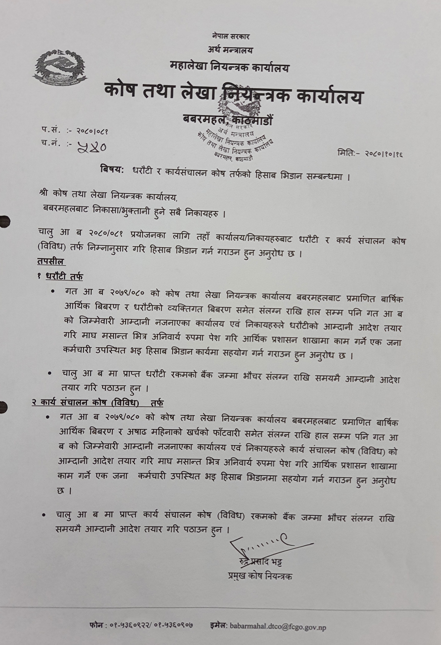 धराैटी र कार्यसञ्चालन काेष तर्फकाे हिसाब भिडान सम्बन्धमा